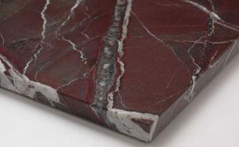 赤、赤味を帯びた茶色の大理石。にじんだ感じの大小の模様がある。