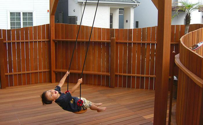 最近では樹脂製のウッドデッキもありますが、天然木のウッドデッキの良さは、木材の特性による熱の吸収や紫外線の室内への反射を少なくして真夏の室温をやわらげるなどの効能があります。