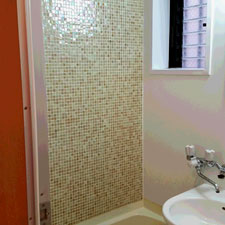 ガラスタイルが目を惹く浴室リフォーム♪ | タイルライフ アウトレットタイル販売(通販)サイト