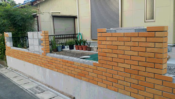 DIYでブロック積みから完成させたタイル貼り外塀♪