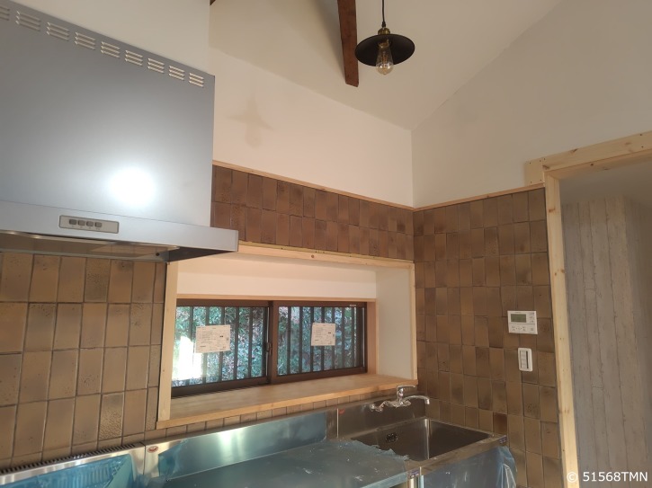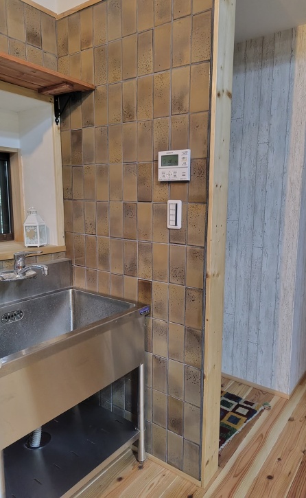 古民家を購入、工務店にリノベーションをお願いして、内装は自分たちですることになりました。 機材が入る前にと、最初は台所のタイルから始めました。 色々とタイルを調べてみましたが、タイルライフさん種類の豊富さと、お値段とで、こちらに決めました。 本当のレトロなタイルで、古民家にぴったりです。 花柄モチーフのタイルも入ってましたが、それはまた、違うところで活用できたらなと思います。 初めてのタイル貼りで、目地の歪みもありましたが、グラデーションの柄でごまかせているかな? 黒の目地にして、渋く仕上げました。