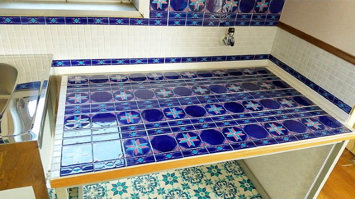昨年から実家の自力リフォームを続けています。 丸ごとアトリエ化計画は2階が終わり、いよいよキッチン!!築48年キッチンは。。。なんとも古い。。。 取り外しと簡単な下地作りは大工さんに依頼。 シンクのステンレスは鉄くず回収に、他は自力で解体してゴミ処理場へ持参。 壁は、キッチンパネルとタイルを貼りつけました。 キッチンパネルはホームセンターで購入。サイズに合わせて有料でカットもしてくれます。 タイルは勿論、タイルライフさんで購入。2種類使いでデザインの変化をつけました。 使わなくなった子供の机にタイルを貼りガス台に。 自粛生活が続きますが、大好きなDIYの時間が取れたとポジテイブに!! ただ、ホームセンターが通常より混んでいるので、買い足しに行けません。材料不足にならないように、無駄のない作業を心掛けました。 これもかえって良い事かもしれません。 コロナの終息を願いながら、次はリビングのDIYへ!!