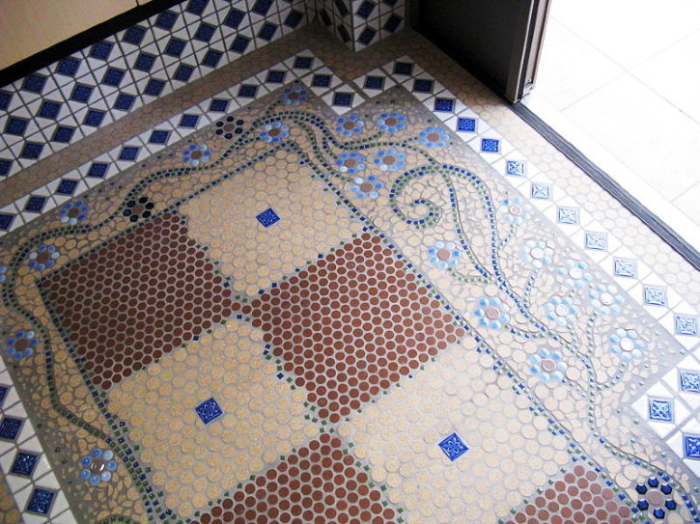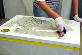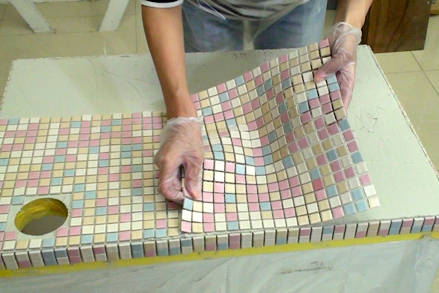 あらかじめ決めたタイルの割付に応じて、順番にタイルを貼っていきます。