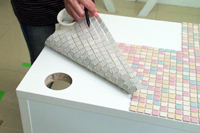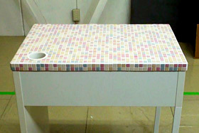 わかりやすくするため、パソコン用デスクの天板にタイルを貼る例でご説明します。