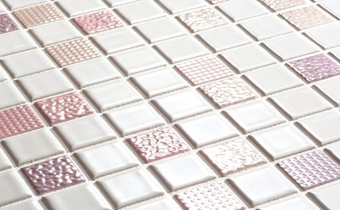 インテリアモザイク ニュアンスは、25mm/50mm角の磁器質モザイクタイルです。微妙な質感とパステルカラーの豊富な色味で、洗面やキッチン壁を上質に演出します。