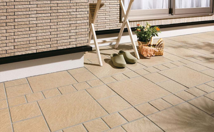素焼きのテラコッタタイルに比べると汚れにくいため、玄関まわりによく使われます。
