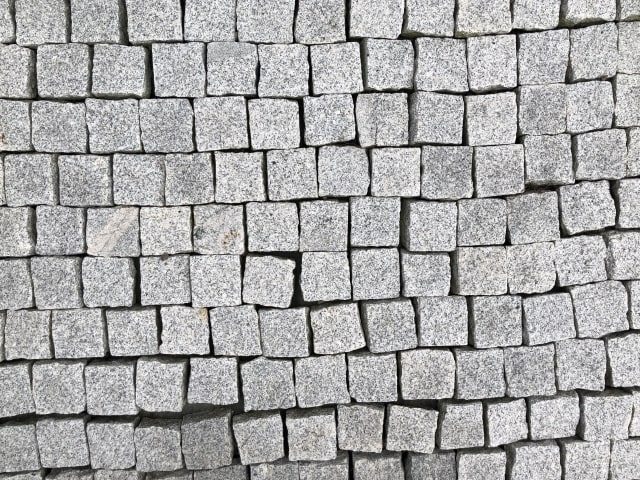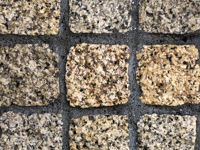 花崗岩は、御影石とも呼ばれており、ピンコロ石の中で特に人気のある代表的な石種です。花崗岩は非常に密度が高く耐久性・耐熱性に優れており、割れにくく丈夫なため、外構や駐車場など幅広い用途に適しています。