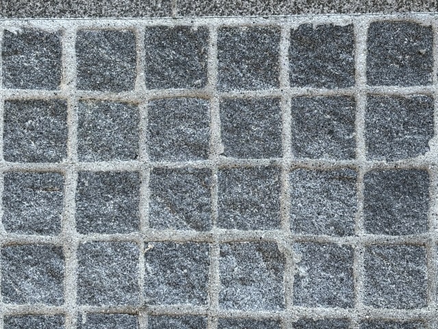 ピンコロ石を使うと、雑草が生えにくくなり、お手入れが楽になるメリットがあります。ピンコロ石を敷設する際には、石材の隙間をモルタルで固定するのが一般的です。