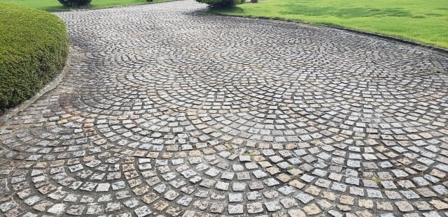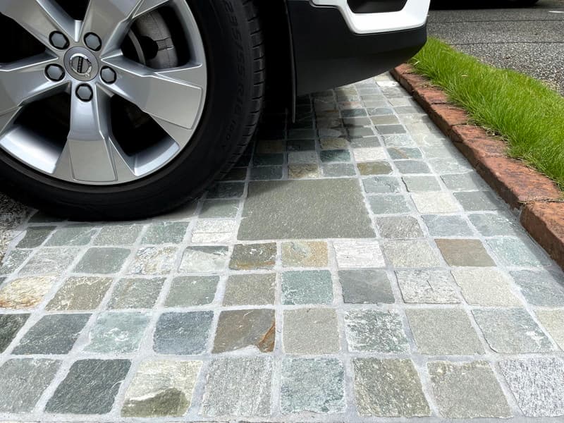 ピンコロ石は、駐車場の舗装にも適しています。高い耐久性を持つため、車が頻繁に出入りしても割れる心配は低く、色褪せや劣化もほとんどありません。