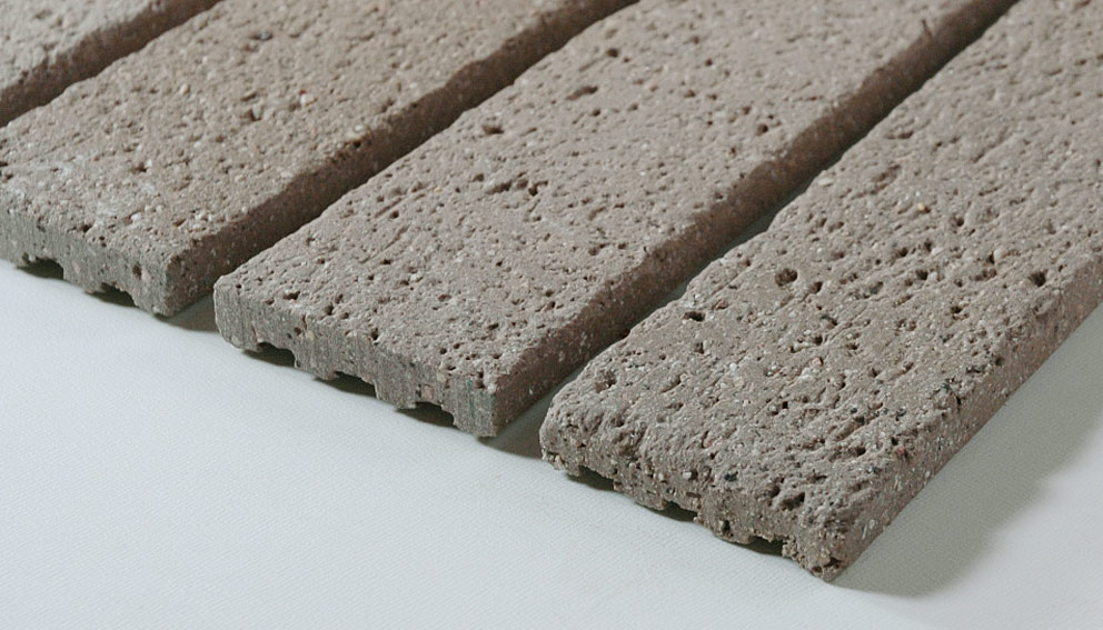 ベージュグレーカラーの湿式二丁掛けタイルです。