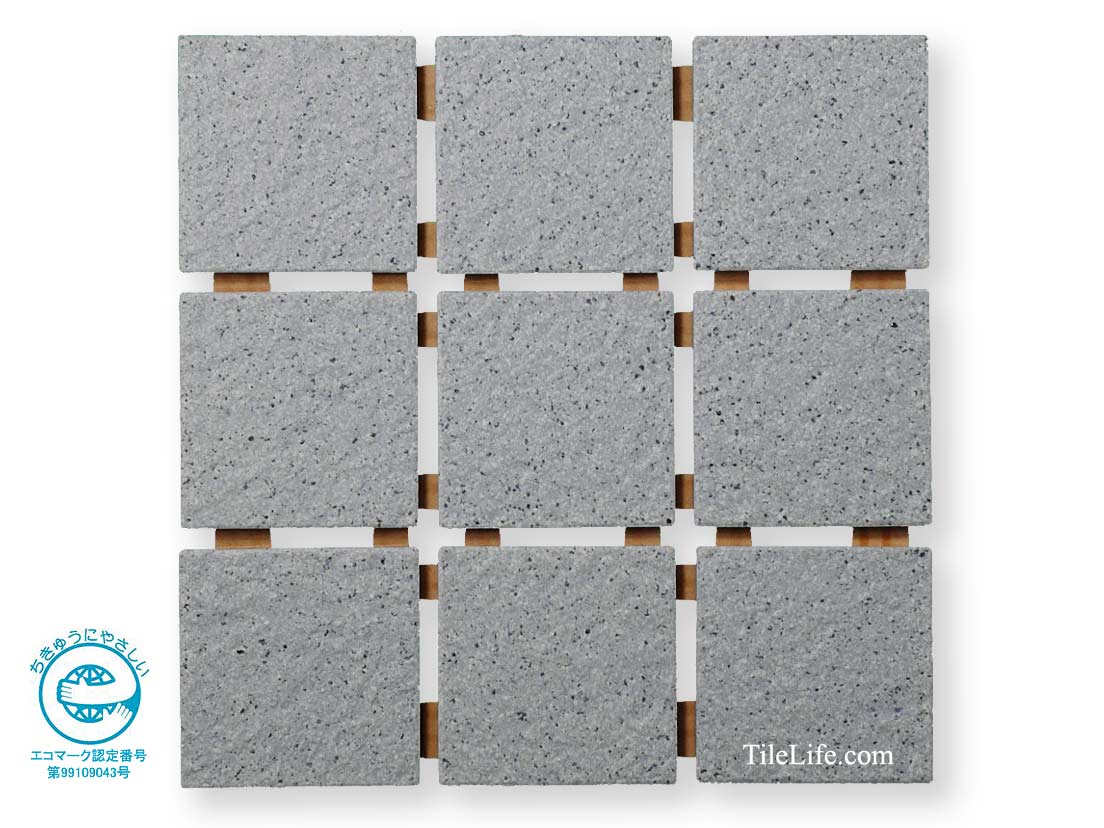 エコマークを取得したタイル(再生原料比率 51%):採石廃土・窯業廃土(キラ)を利用したリサイクルタイルです。