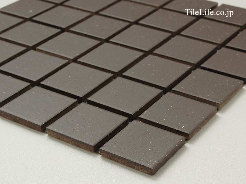 黒色のフラット面状、白の混ぜ物が入った45角タイルです。