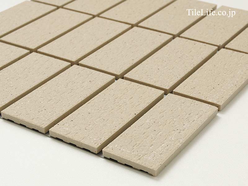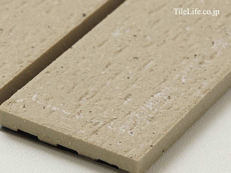 薄いベージュ色でヒッカキ面状の45二丁タイルです。