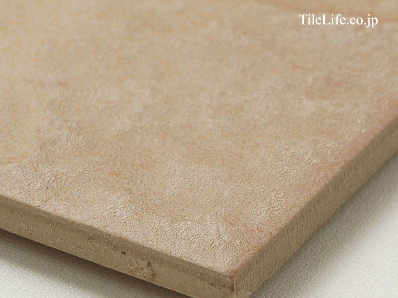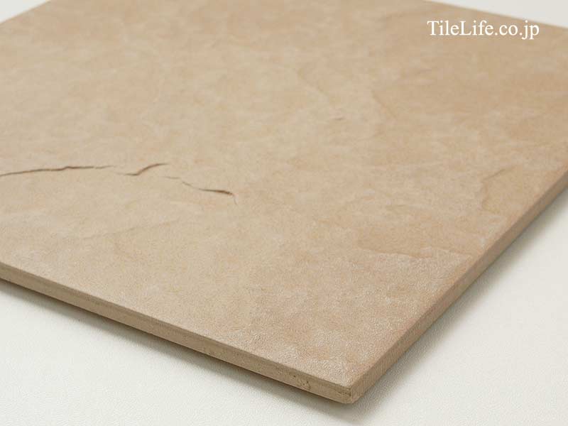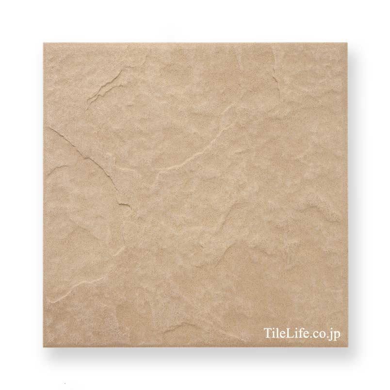 薄茶色で砂岩面状の300角タイルです。