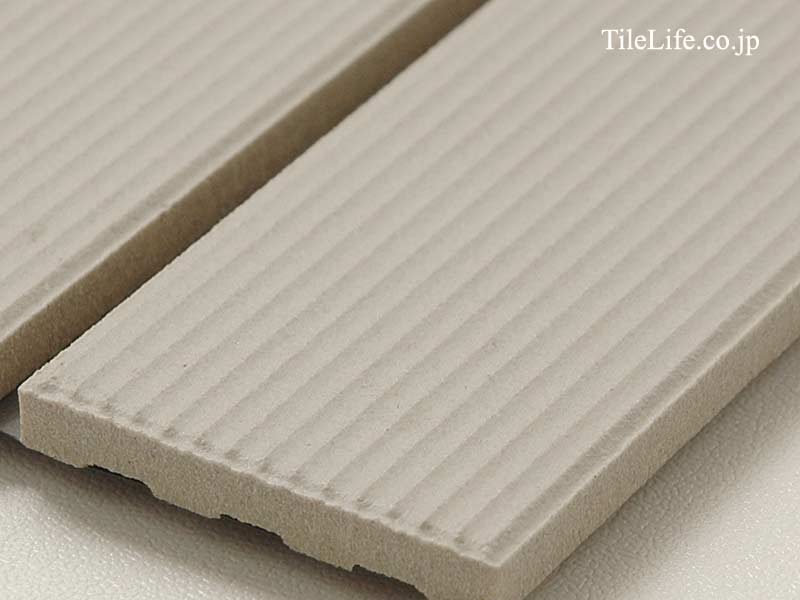 白グレーで横筋面状の45二丁タイルです。