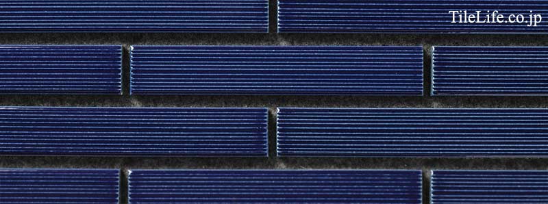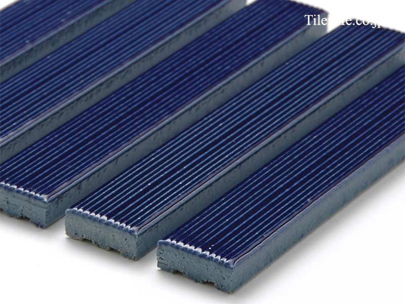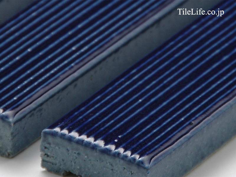 艶のある青の釉薬を細やかな筋面に施釉したボーダータイルで手作りの良さが伝わる商品です。