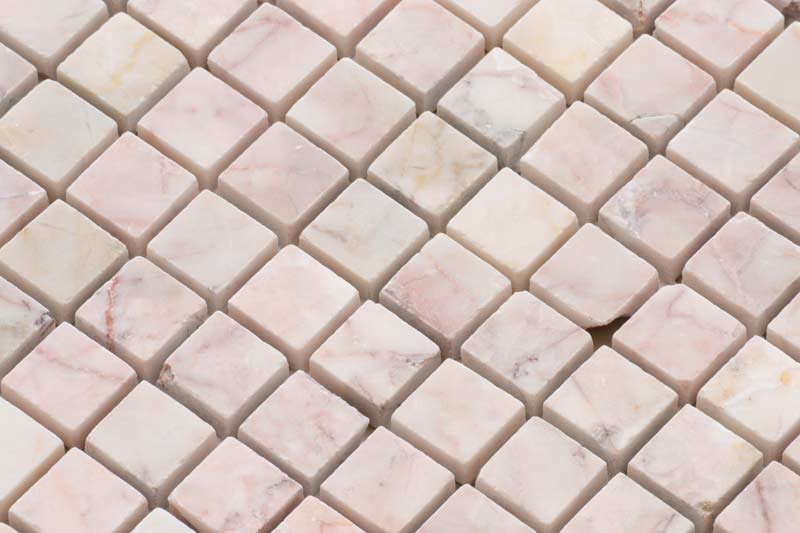 大理石モザイク「ピーチフラワー」は、室内床・壁どちらにもマッチしたナチュラルで上品な色合いが特徴です。