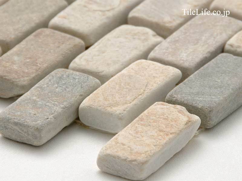 ●天然石は1枚ごとに色調と模様が異なるため、施工の際には、数箱を混ぜ合わせて仮並べするなどして、必ず全体のバランスを見てから貼って下さい。