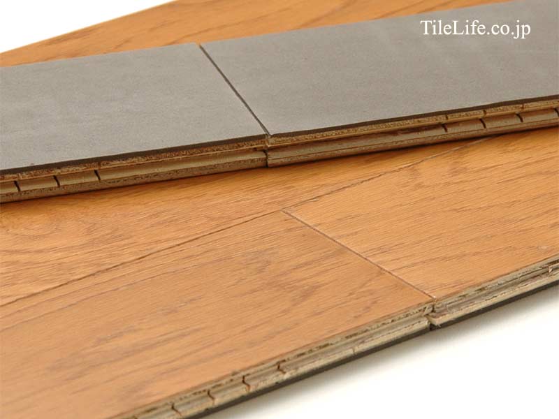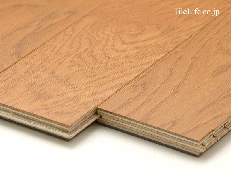 表面材は天然木の厚い単板を使用し、無垢材の質感と複合フローリングの安定した形状を両立したハイグレートな商品です、詳しくは「表面材の厚みによる違い」をご覧下さい。