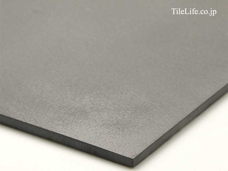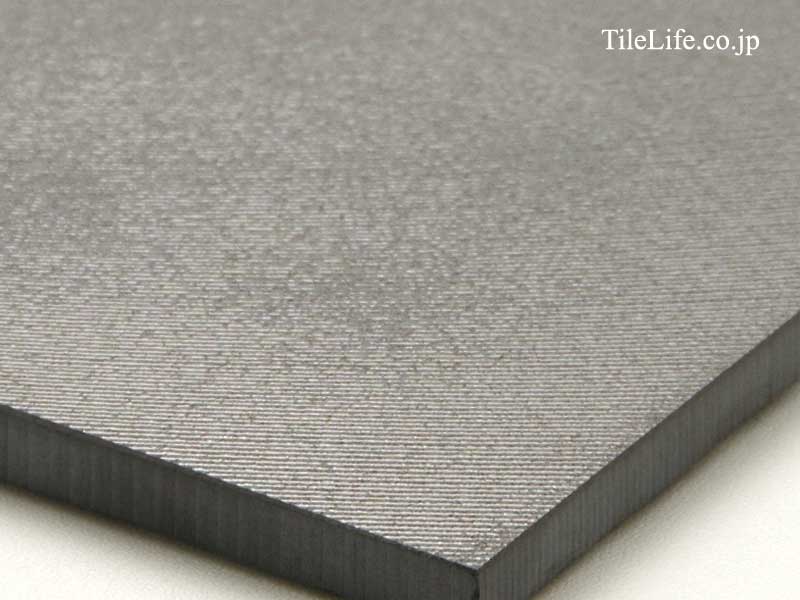 陶磁器の深み、金属質の美しい光沢感、まるでクシ目をひいたような洗練されたデザインが融合した750角の大判床タイル。