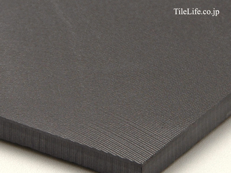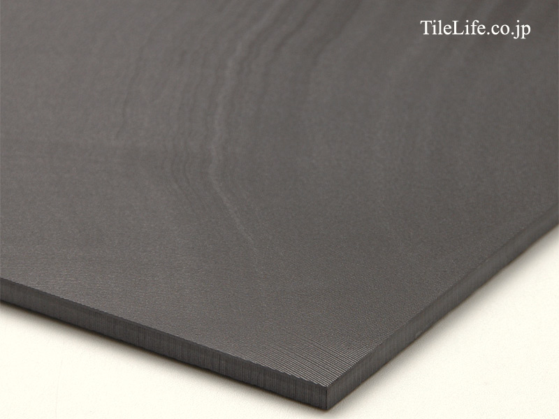 陶磁器の深み、金属質の美しい光沢感、まるでクシ目をひいたような洗練されたデザインが融合した750角の大判床タイル。