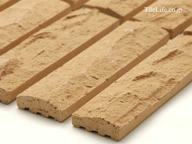 湿式タイルのハツリ面状二丁掛けタイルです。