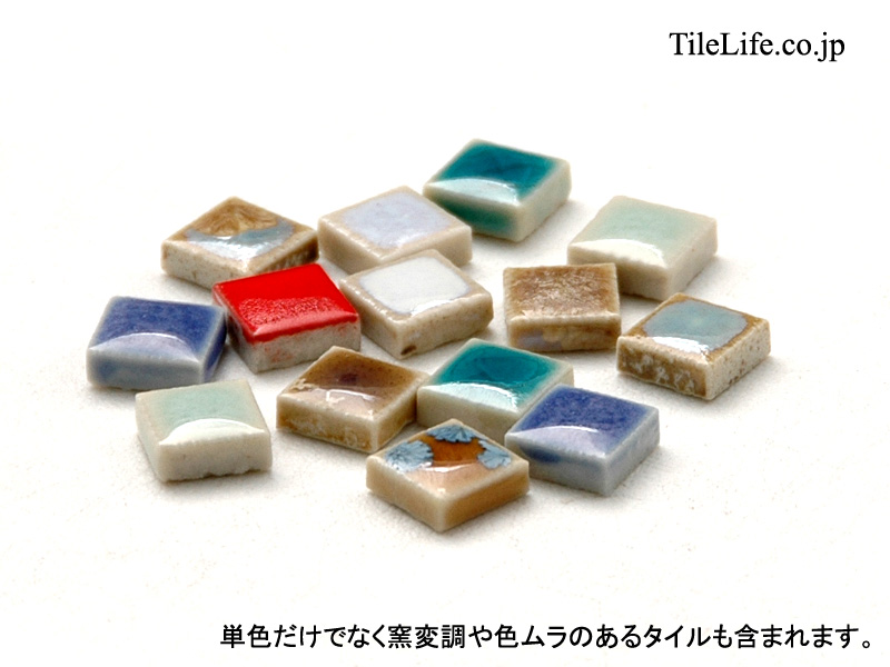 タイルクラフト用 マルチカラーMIX 10mm角バラ 単色をはじめ、窯変調や色ムラのあるタイルがランダムにいろいろな色が入っていますのでお楽しみいただけます。