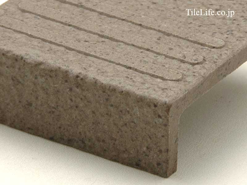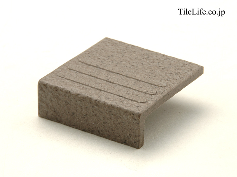 御影石調100角無釉のタレつき階段タイル(段鼻タイル)。 定番のこたたき面状で、様々な場面での使用が可能です。