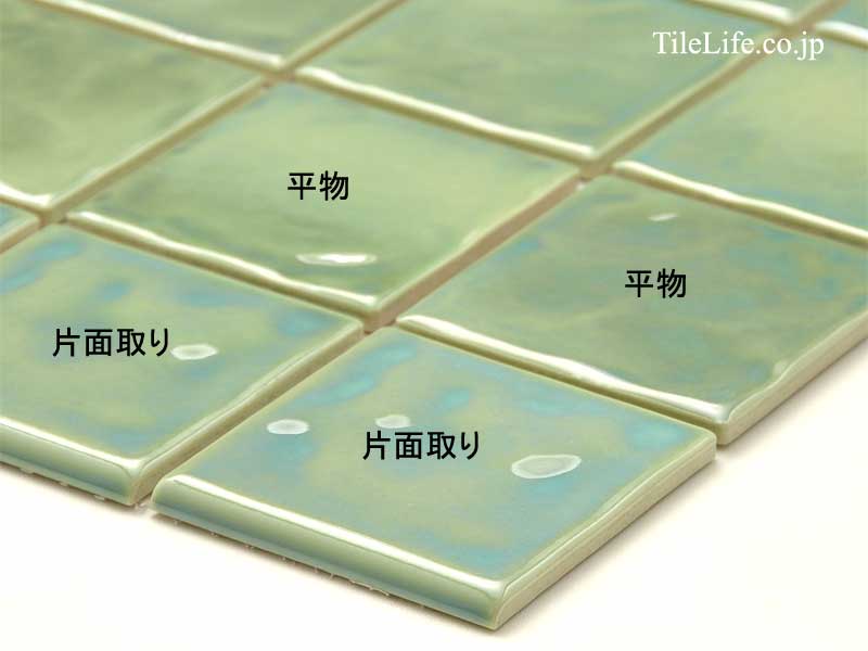 コーナーを納める片面取りと呼ばれるタイルです。