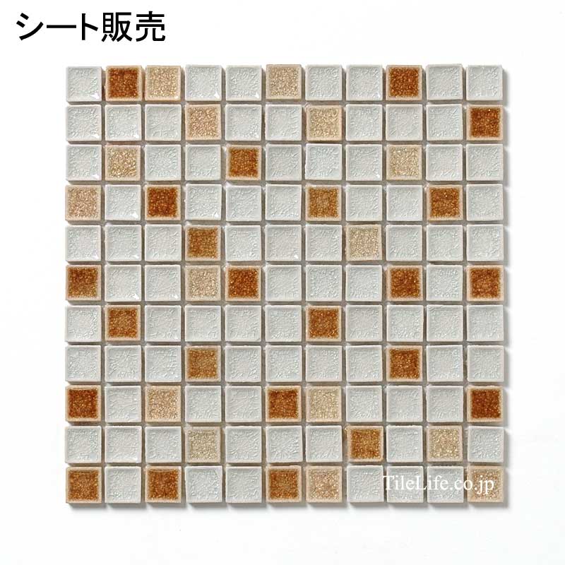 タイルライフのトップ > シート販売 モザイクタイル 25角平 ブラウンホワイトアイス (¥1000/シート以下) 26500MCN