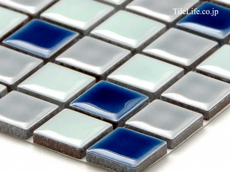 釉薬が生み出す淡い色調とつややかな光沢が魅力の施釉モザイクタイル。