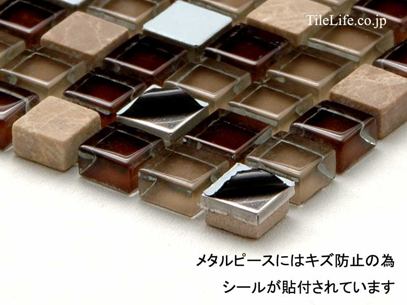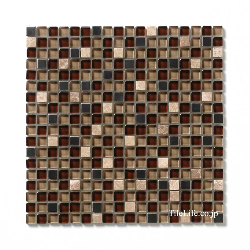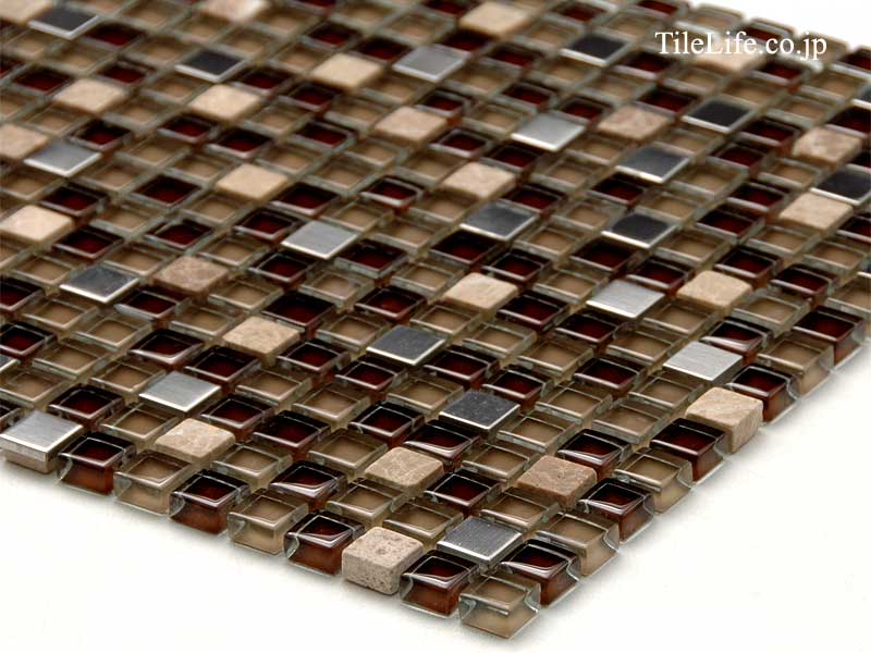 タイルライフのトップ > ガラス&石材&メタル ミックスモザイクタイル 15角平 裏ネット貼り 27808RCA