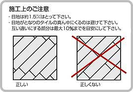●細長形状になりますので若干の凸反りがあります。目地部の段差を避けるため、互い違いにする部分はタイル長さの最大10%までを目安にして下さい。