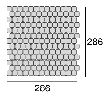 目地共シート寸法:286×286mm(約2mm目地) 1シート:13粒×13粒=169粒 タイルサイズ:20×20mm |