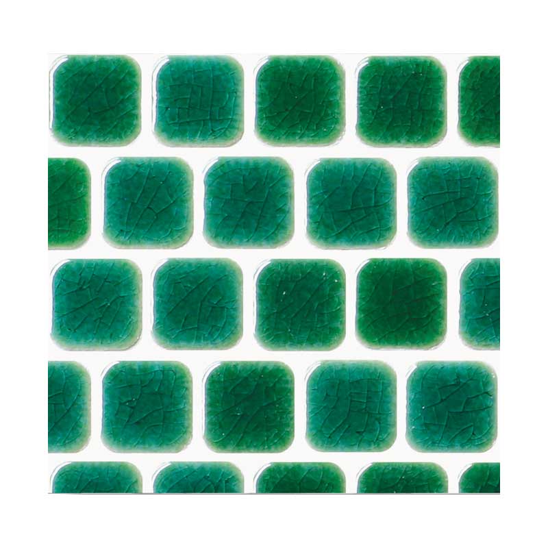 - モザイクタイル レンガ貼り 20角平 表面紙貼り 貫入あり グリーン系 (¥750/シート以下)