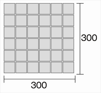 目地共シート寸法:300×300mm (約3.5mm目地) 1シート:6枚×6枚=36枚 タイルサイズ:46.5×46.5mm |