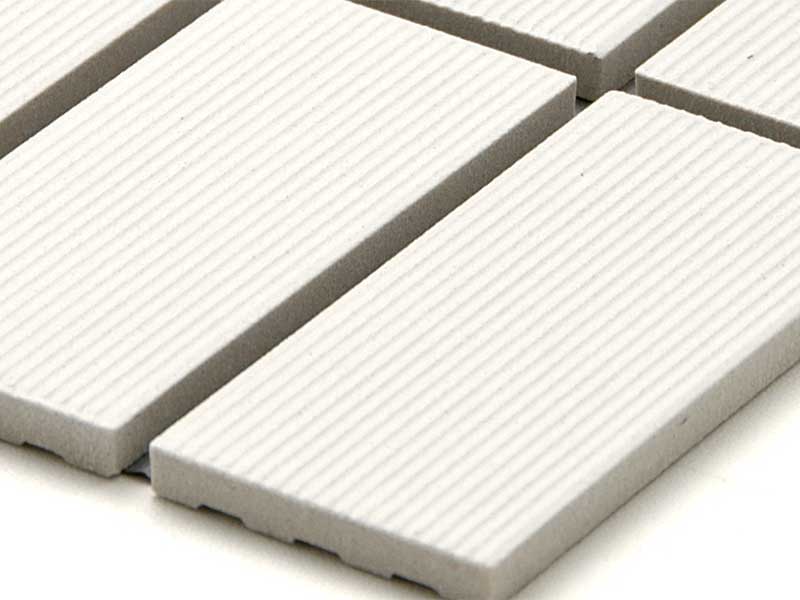 モダンな雰囲気が漂う、横筋面の外装モザイクタイルです。 <注意点> ●多少の寸法誤差がありますので、調整しながら施工願います。