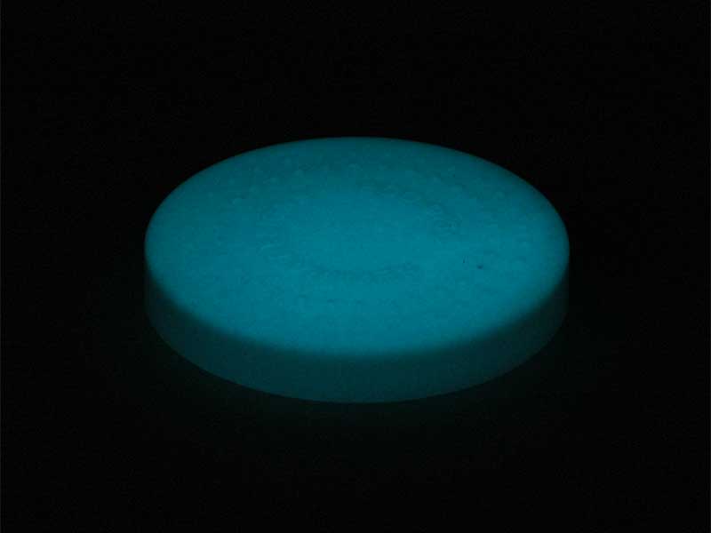 紫外線を吸収して、数分で発光。