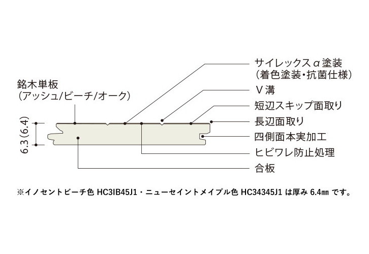 表面の天然の突き板に着色したカラーフロア系の「エアリス-α スーパー6」シリーズ