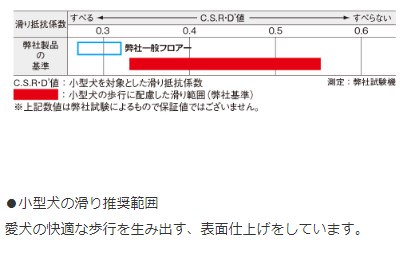 ご使用の床を剥がすことなく、上から貼れるのでペットを室内で飼われている方のリフォームに最 適です。小型犬の歩きやすさに配慮した床材です。