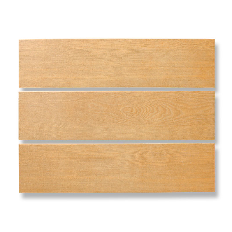 リアルな木目が特徴の床タイル。 オイル塗装を施したような色味でナチュラルな風合いに仕上がります。 <注意点> ●多少の寸法誤差がありますので、調整しながら施工願います。 ●焼物特有の色幅があります。 ●長尺タイルの性質上、基準内の反りであっても張り方によっては反りが目立つ場合があります。 目地をずらして施工する場合は長辺の1/4以内で設定していただくことをおすすめします。 ●屋内壁に使用する場合は、全面接着剤貼りにて施工して下さい。 ●クリーニングの際、薬品等を使用しますと、変色するおそれがありますので、ご留意下さい。 ●製品には、焼物独特に色ムラ(窯変)及び、多少寸法のばらつきがあります。