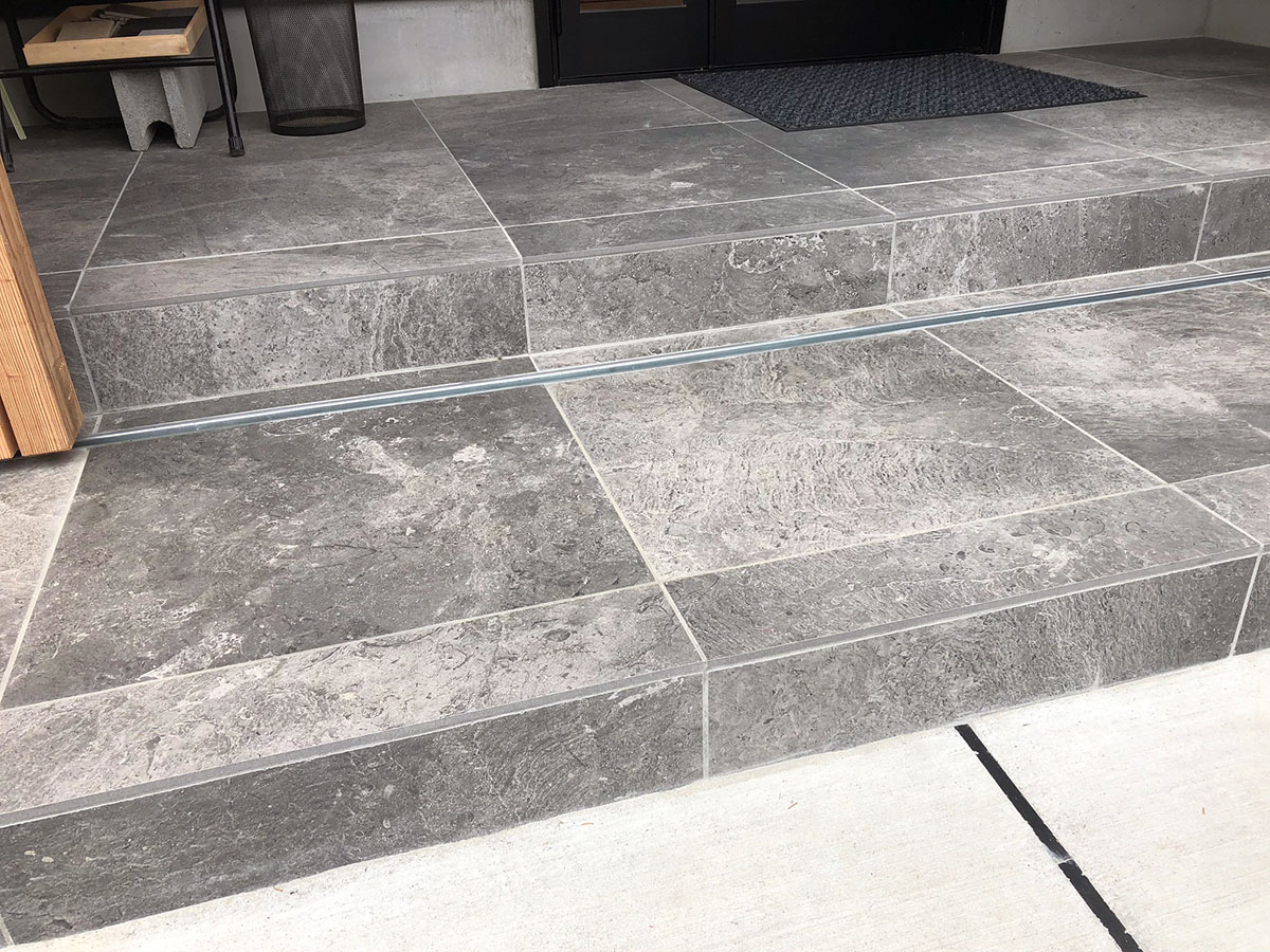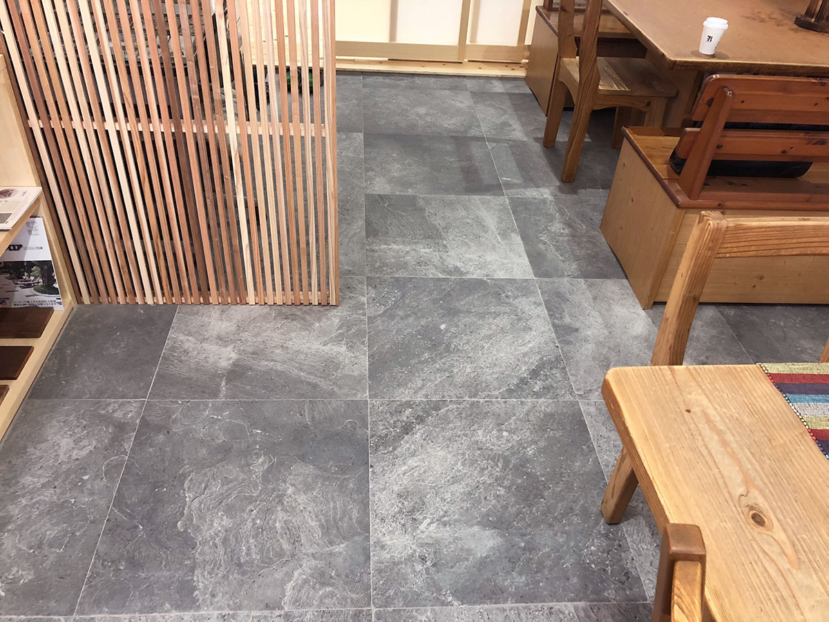 どこから見ても本物の石のような風合いを持った天然石調タイルです。 天然石以上の繊細な大小の柄が高級感を醸し出します。