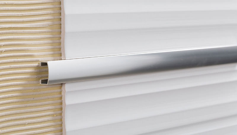 【壁見切りU】 タイル間に華やかなアクセントとして使うことができる見切り材です。