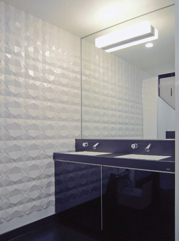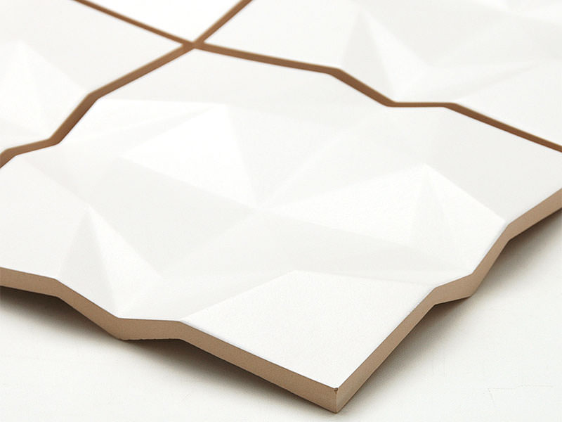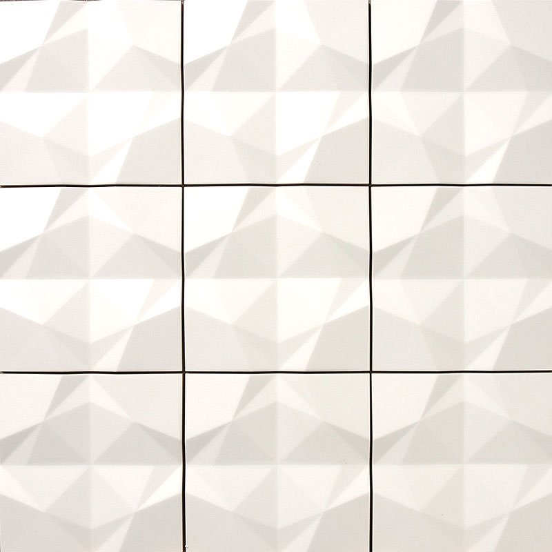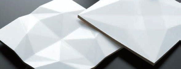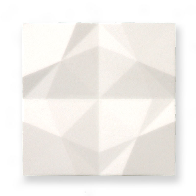 折り紙を折って広げたような面状で陰影感が楽しめる内装タイル。 マットなホワイトで室内が明るくなります。