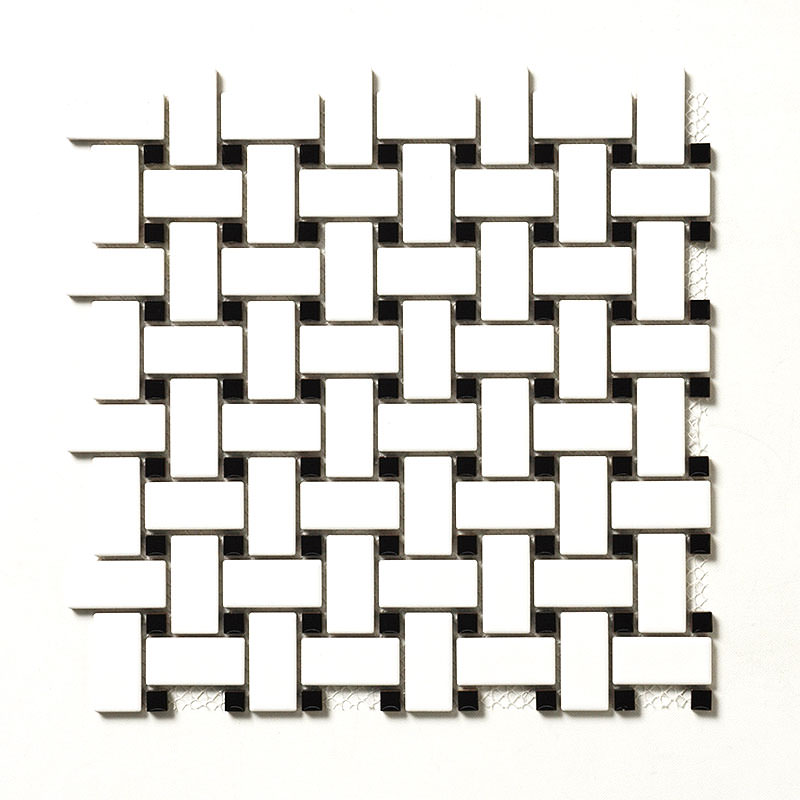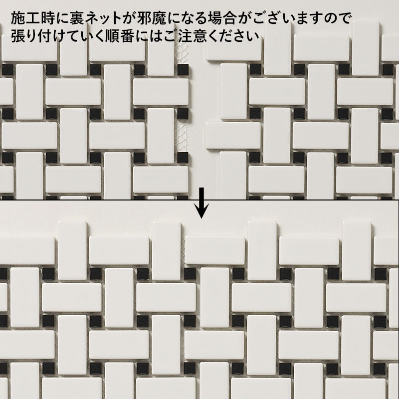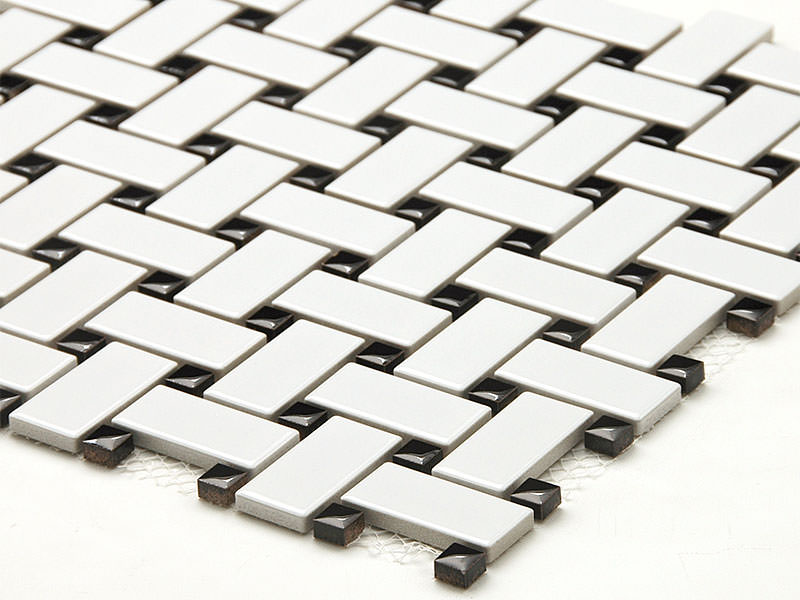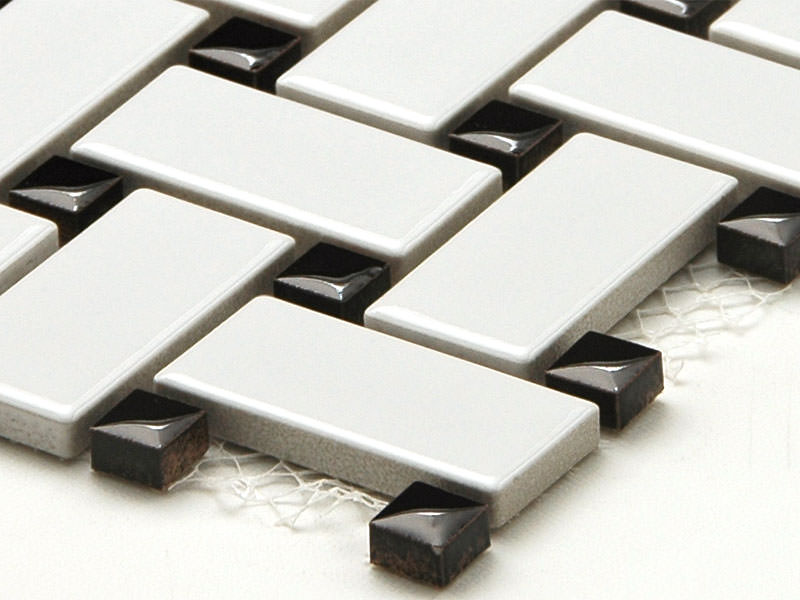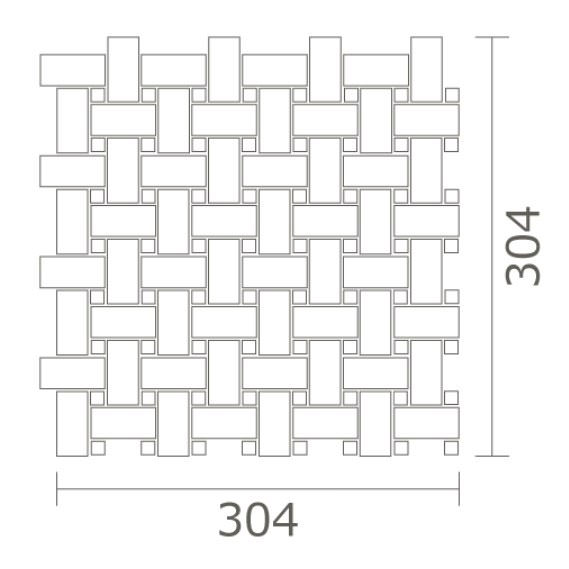 長方形タイル23×48mmと10mm角タイルの組み合わせシート。 シート目地共寸法:304×304mm 裏ネット貼り |