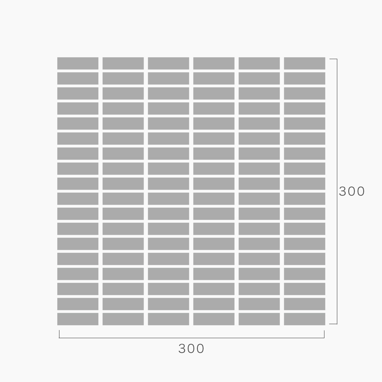 1シート:18×6枚 タテ目地:2mm・ヨコ目地:2.2mm シートサイズ:300×300×t6 mm |
