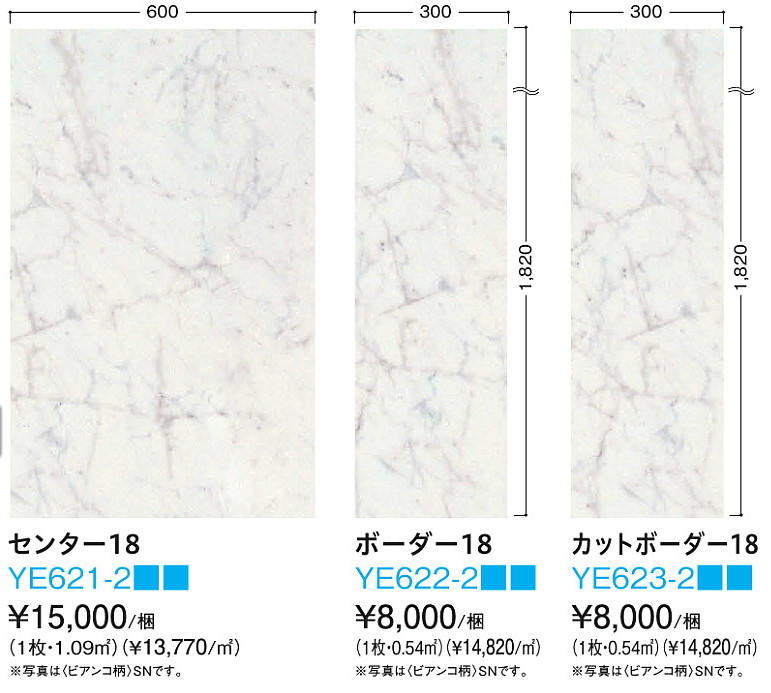 - 大建工業 ハピアフロアトイレタフ石目柄 (ホワイトオニキス柄) ボーダー18 300x1820 YE622-2SX