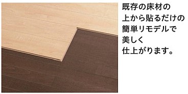 ご使用の床を剥がすことなく、上から貼れるのでリモデルにも最適です。