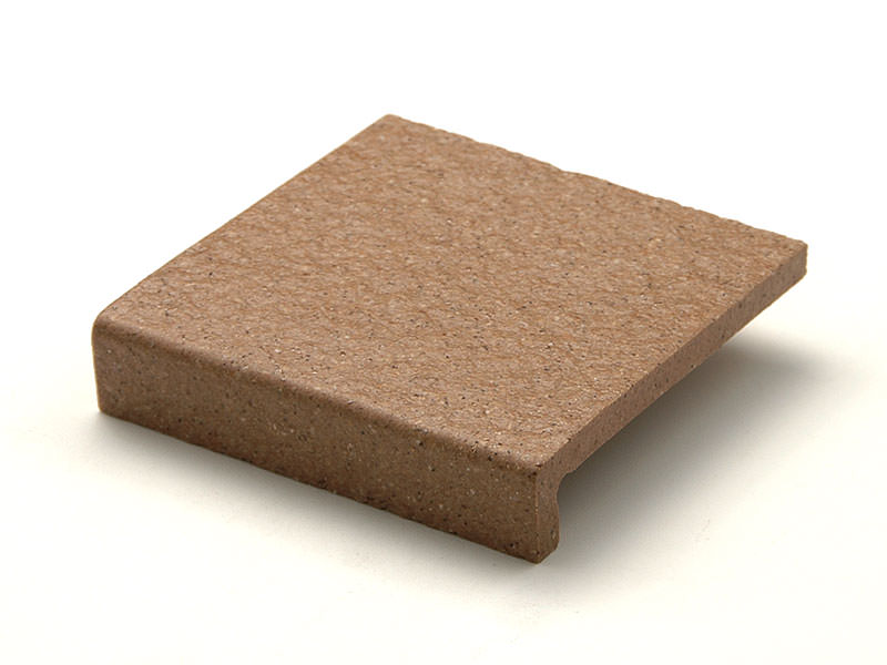 強度があり、滑りにくいので外溝にはもってこいの床タイルの段鼻タイル(階段タイル)です。