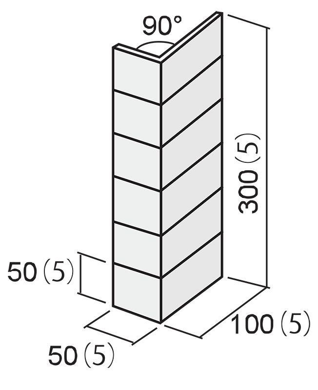 50二丁標準曲り 実寸法:(95+45)×45mm 目地共シート寸法:(100+50)×300mm(6枚シート貼り) |